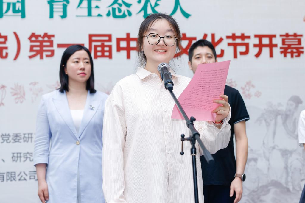 教师代表浙江省突出贡献科技特派员、省师德楷模、中药学科白岩老师发言,分享了中医药文化悠久的历史底蕴与经大浪淘沙后仍熠熠生辉、世代相传的智慧瑰宝。学生代表中药学211班陈苗苗同学结合专业学习经历讲述了中药求索之旅上的认识和感受。