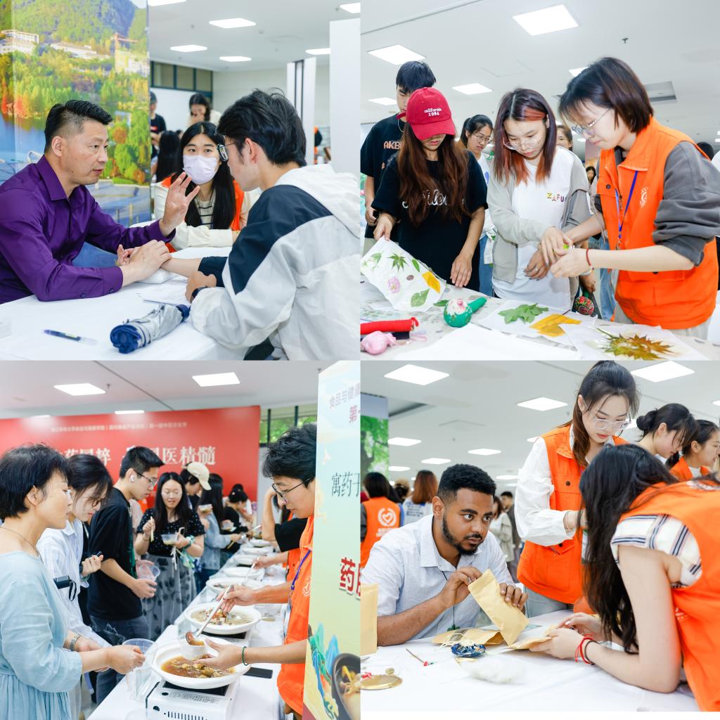开幕式后,师生参加了品尝药膳八大碗、手工制作香囊香皂、中草药拓印、中药茶饮、中医问诊把脉、中药标本和科研产品展示等精心准备、丰富多彩的活动,通过沉浸式体验,切身体验感受中药文化的魅力。