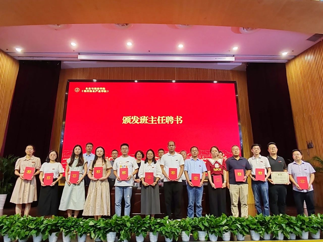院党委书记朱军宣读新生班主任文件,学院班子成员为新生班主任颁发聘书,并为新生代表佩戴校徽。教师代表生物制药专业负责人高飞老师对同学们如何有意义的度过大学4年提出宝贵建议,并欢迎同学们走进教室、走进实验室、走进办公室,与老师们探讨学问,分享生活,共同构建“师生融乐”的师生关系,提升立德树人实效。在校生代表食工221 班高珊、新生代表食安241班罗琳雅、食健研242 班张宏斌分别发言。