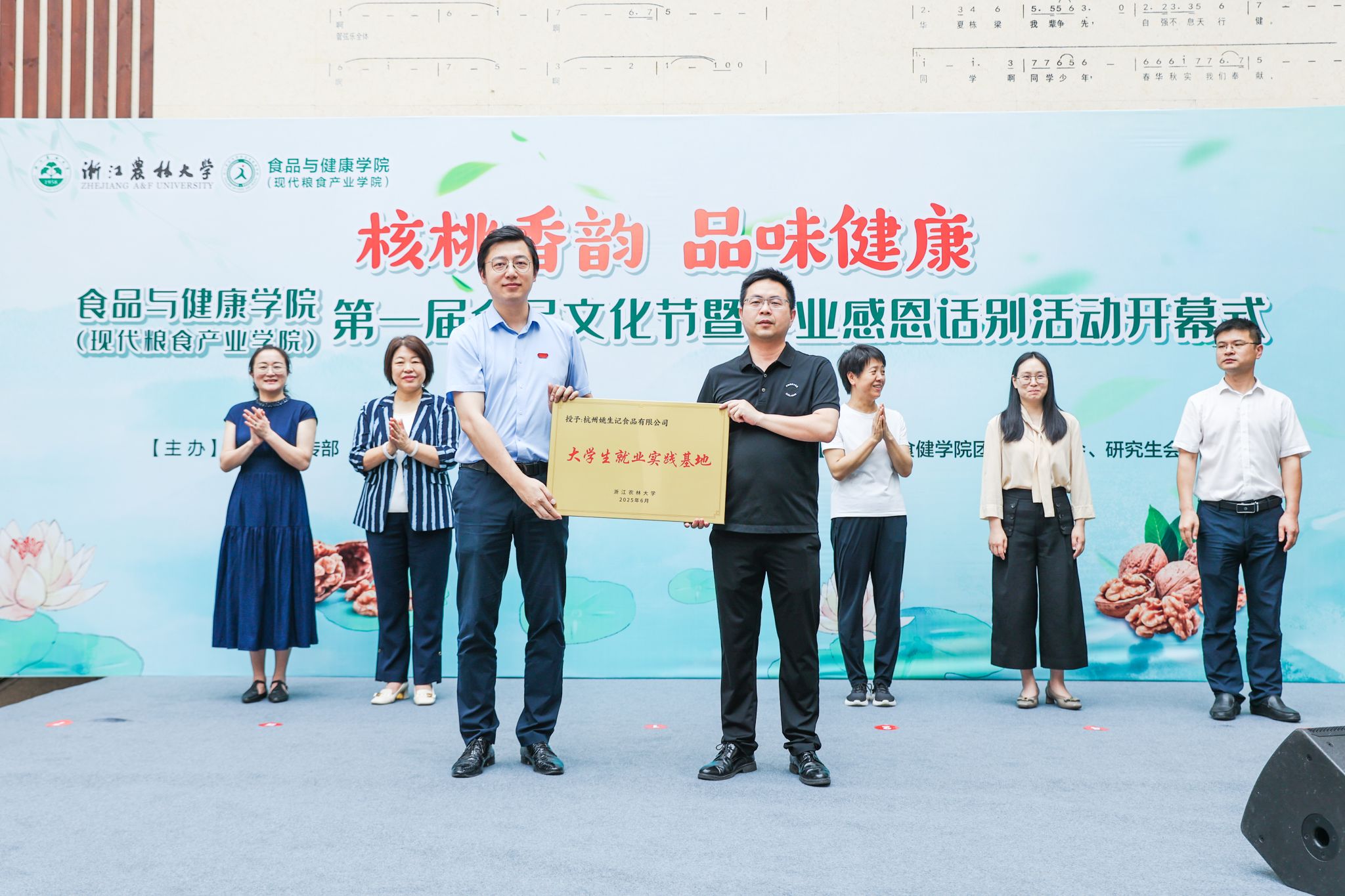 仪式上,周晓光向杭州姚生记食品有限公司颁发就业实践基地铜牌,标志着“从森林到餐桌”产业链新功能的拓展,同时,为毕业生搭建起更广阔的就业平台,带来新的职业发展机遇。