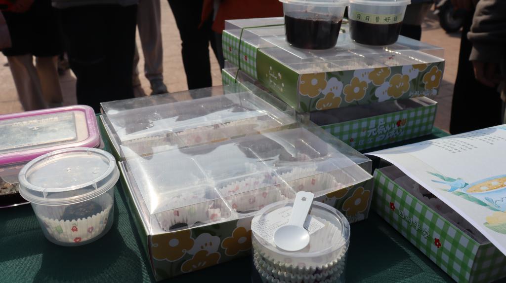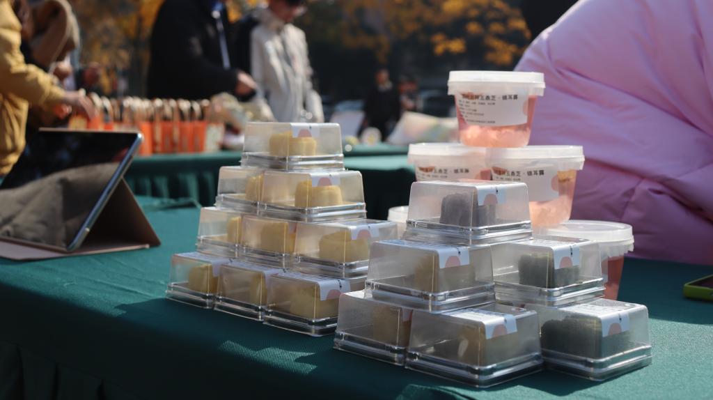 当天中午,在东湖食堂门口特别举办了大赛试吃会,进入决赛的16支队伍将自己的创意产品进行展示,并热情地邀请同学们品尝。同时,各个团队为现场观众进行了作品讲解,将创作的全过程以及美食背后所蕴含的历史故事生动地展示出来,使同学们能更好地从作品中感受到中华美食厚重的文化底蕴和现代新兴文化的活力。