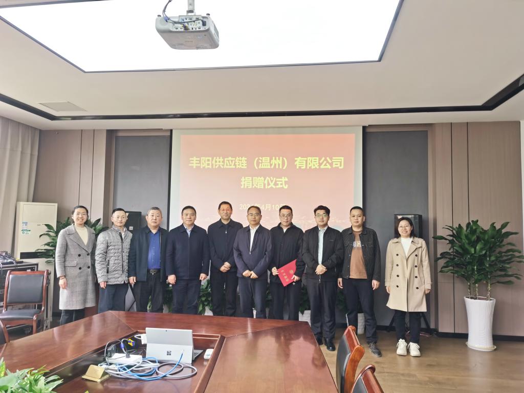 4月10日,丰阳供应链(温州)有限公司捐赠仪式在学9-306举行。副校长胡祖吉,校教育基金会秘书长哀建国,丰阳供应链(温州)有限公司负责人蔡福泽、胡加、黄兆华,威廉英国党委书记汪和生、副院长庞林江及食品学科相关教师参加。仪式由汪和生主持。