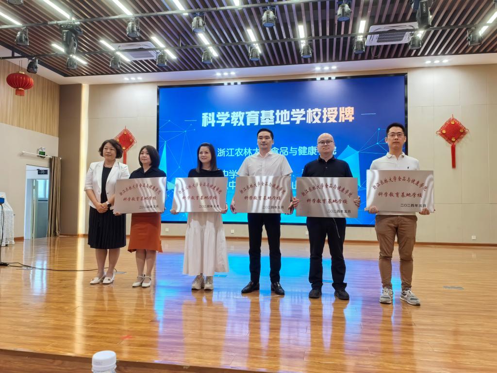 活动上,闵伟红为科学教育基地学校授牌。中药学科教师白岩、尹良鸿、徐建伟和许海顺四位教师聘任为富阳区中小学科学副校长。