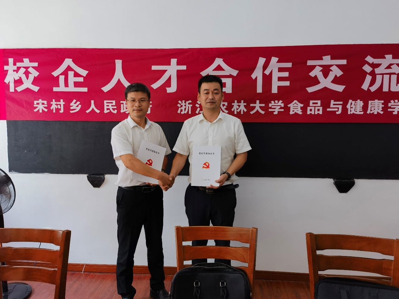 朱军书记介绍了学院的办学特色、专业建设、科研平台、人才储备及相关科研成果等情况,并就党建工作、科研支撑和科技赋能以及校地合作培养人才等工作具体细节进行了深化细化部署,以期建立创新协作的双赢模式,使科研成果助力产业发展。他希望学院能与宋村乡、云源一叶公司三方共同打造新型党建共同体,牵党建联建之手,实现资源共享、优势互补、互帮联建、产研相融,拓展院地合作、院企合作,真正让党建凝聚人心、促进发展,以人才之力共同助推宋村乡的共富事业再上新台阶。