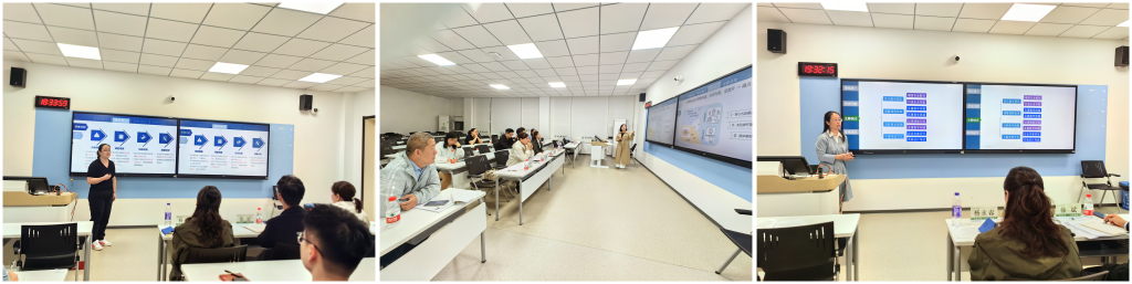 6位参赛教师结合教学创新成果报告、教学大纲与教学实践,深挖教学痛点难点,通过优化教学目标、重构课程内容、创新教学方法、改革教学评价等举措对课程进行系统设计与创新,重点突出教学改革与积极探索教学的创新模式,详细阐明了课程设计的整体思路。评委们针对参赛教师现场汇报情况进行逐一点评,在肯定青年教师改革创新的同时,从教学创新设计、痛点和举措与课程的契合度、亮点的呈现方式等方面,针对课程创新举措中的具体疑问点进行深入剖析,并结合自身丰富的实践经验提出了许多建设性的意见。