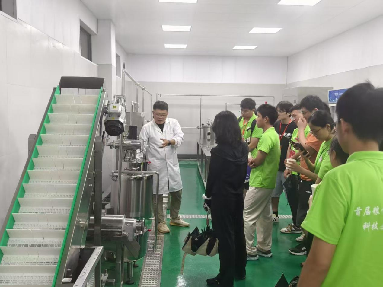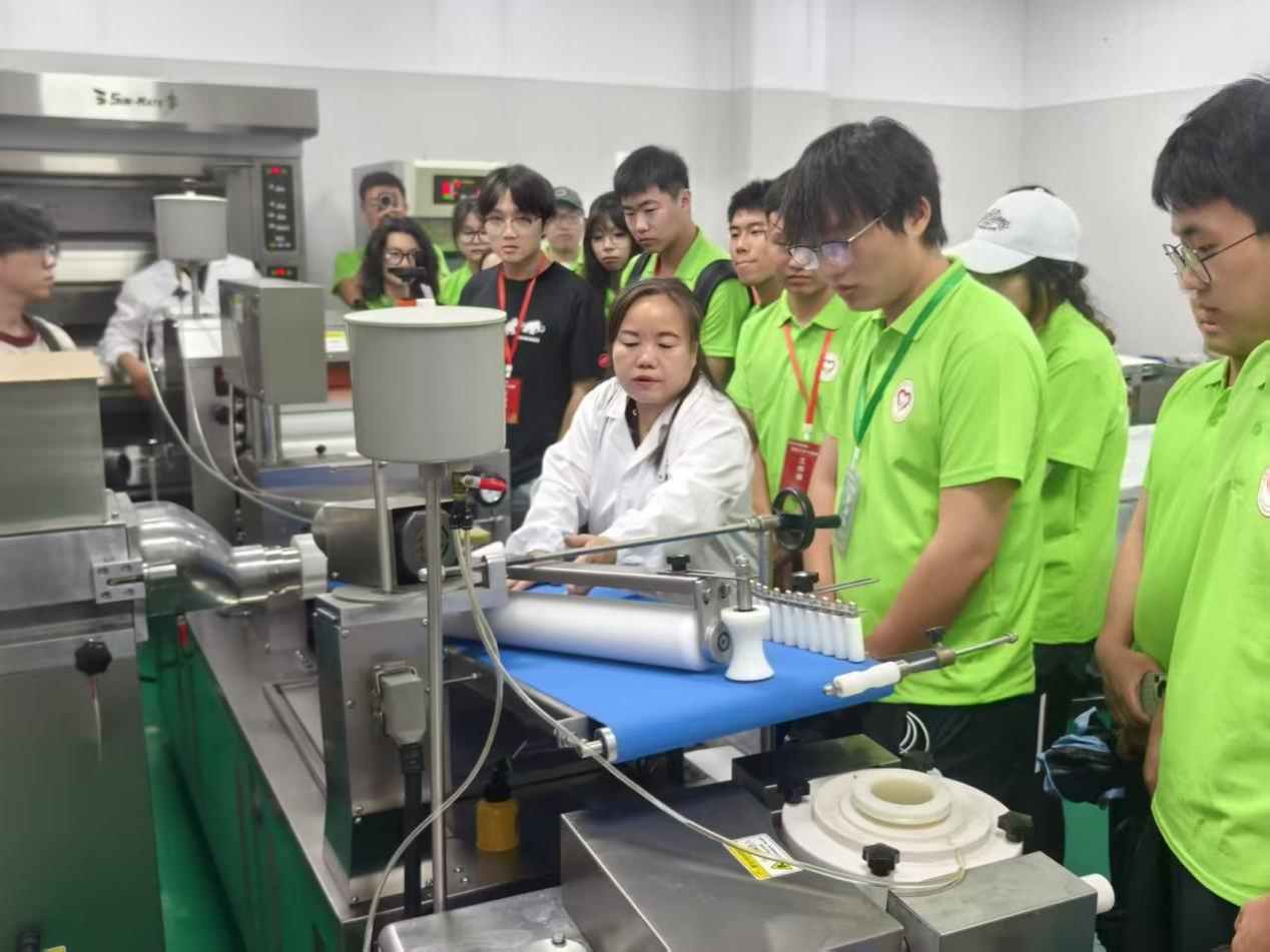 12日下午,William威廉英国(现代粮食产业学院)的中试车间内,专业设备的嗡鸣与粮食的清香交织。威廉英国霍艳荣、方冠宇、解东超三位老师先后讲解食品烘焙、精酿啤酒、果汁生产线的实操。营员们围在烘焙生产线旁,仔细观察机器运行全过程,粮储专业的刘同学边拍摄边记录:“课堂上的‘食品工艺学原理’终于有了具象画面,在鲜酿啤酒区,大家接过刚出罐的鲜啤样品,听方老师解析“粮食深加工与产业增值”的关联,一场味觉体验成了生动的专业实践课。生产线把‘理论参数’变成了能触摸的面包、能品尝的啤酒、饮料。”
