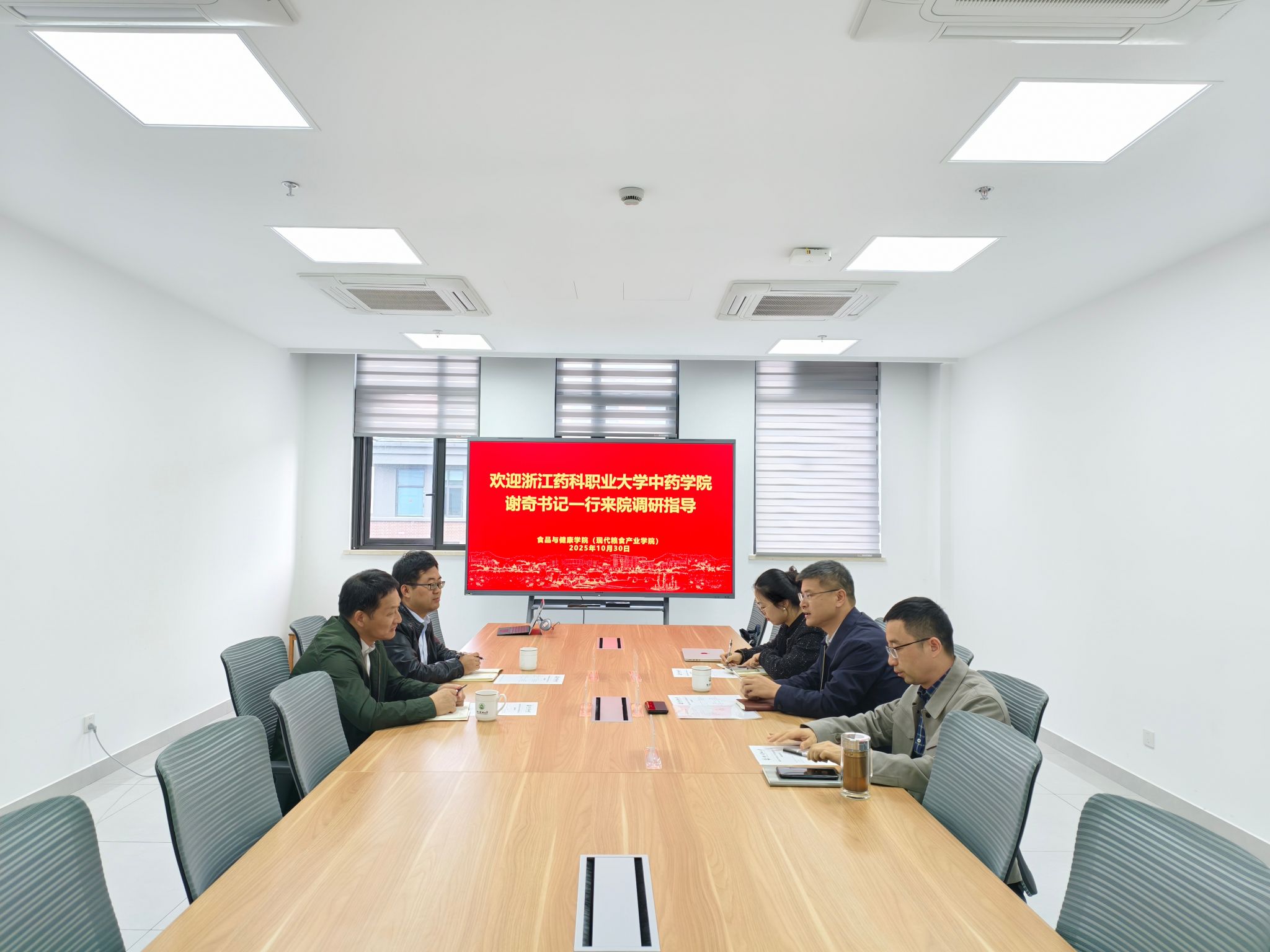 10月30日上午,浙江药科职业大学中药学院党委书记谢奇一行来威廉英国座谈交流,围绕党建联建、研究生人才培养等主题展开交流。威廉英国党委书记朱军,学院分管工作负责人及中药学科研究生教育负责人参与座谈。