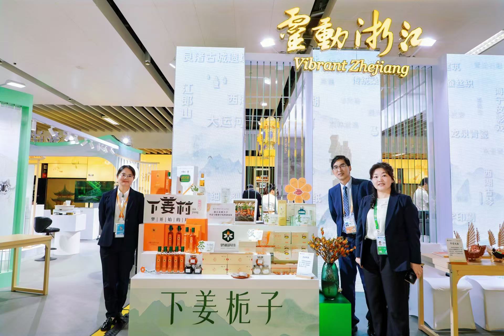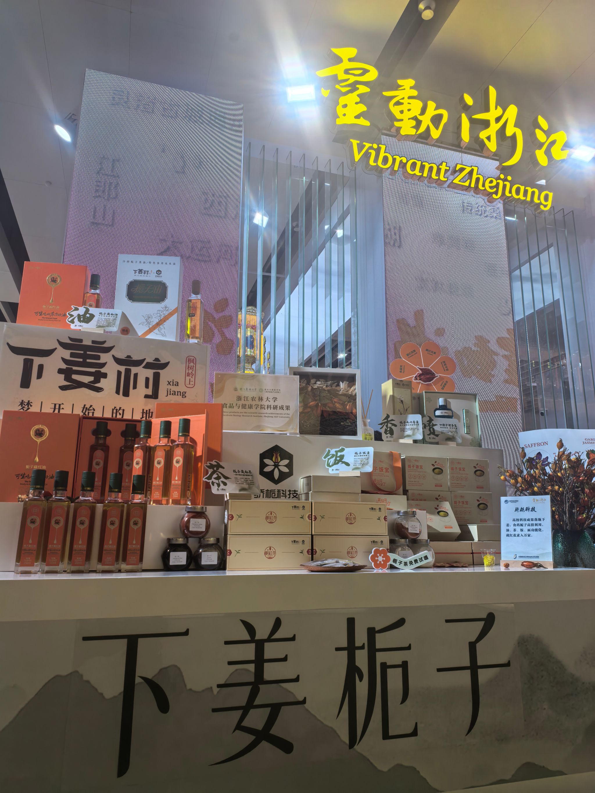 11月5日-10日,第八届中国国际进口博览会上,我院食品安全与营养创新团队研发、淳安下姜村出品的系列栀子产品走红,成为展会新“网红”。产品有栀子果系列涵盖食用油、保健茶、调味品、天然色素等健康产品;栀子花系列包括爽肤水、洗面奶、膏霜、乳液等护肤品,以及手工皂、香薰等日化产品。