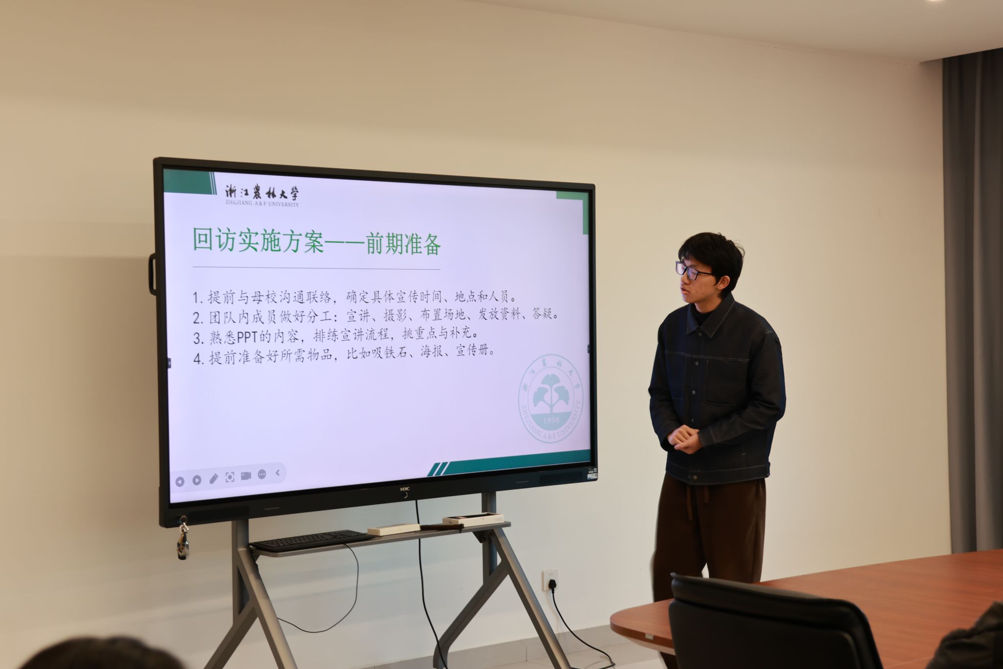 团学社会实践部、新闻编辑部及往届优秀团队代表分别从社会实践活动开展、新闻宣传稿撰写规范、相关实践经验分享多个方面展开。朱浩楠同学结合自身经历,系统梳理了回访母校的整体流程,并为各团队提供了多项实用建议。