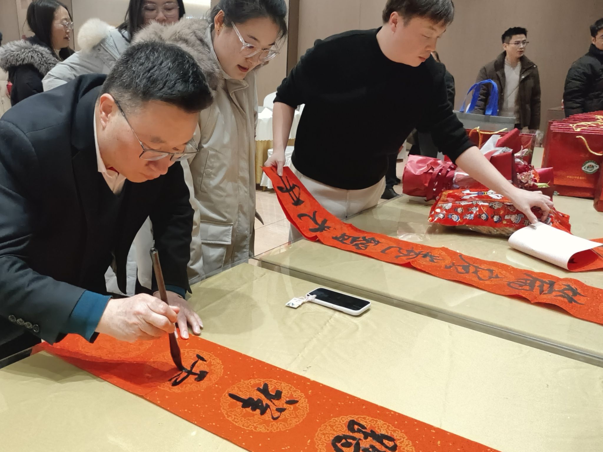 团拜活动在温馨的暖场环节中拉开帷幕,老师们写福字、送春联、品糖葫芦、领取奖券,现场年味十足。