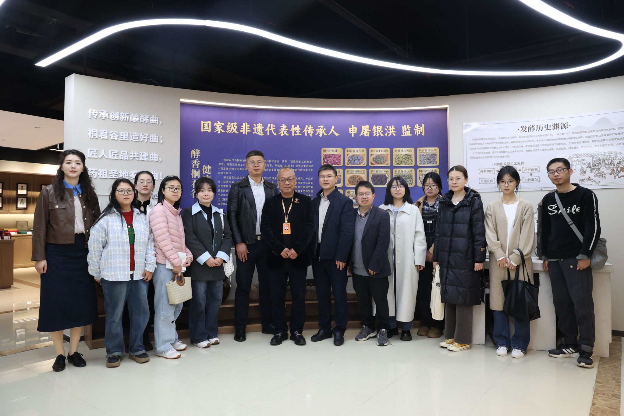 企业负责人、国家级非物质文化遗产“桐君传统中药文化”代表性传承人申屠银洪对学院师生来访表示热烈欢迎,他详细介绍了企业的发展历程、文化积淀、核心产品体系、行业竞争优势,以及未来在大健康领域的战略布局和人才需求方向,着重展示了企业在生物医药等领域的研发实力和产业落地成果,并表达了与学院深化产教融合的合作意向,希望能与学院在人才培养、实习实训基地建设、科研项目合作等方面建立长期稳定的合作关系。