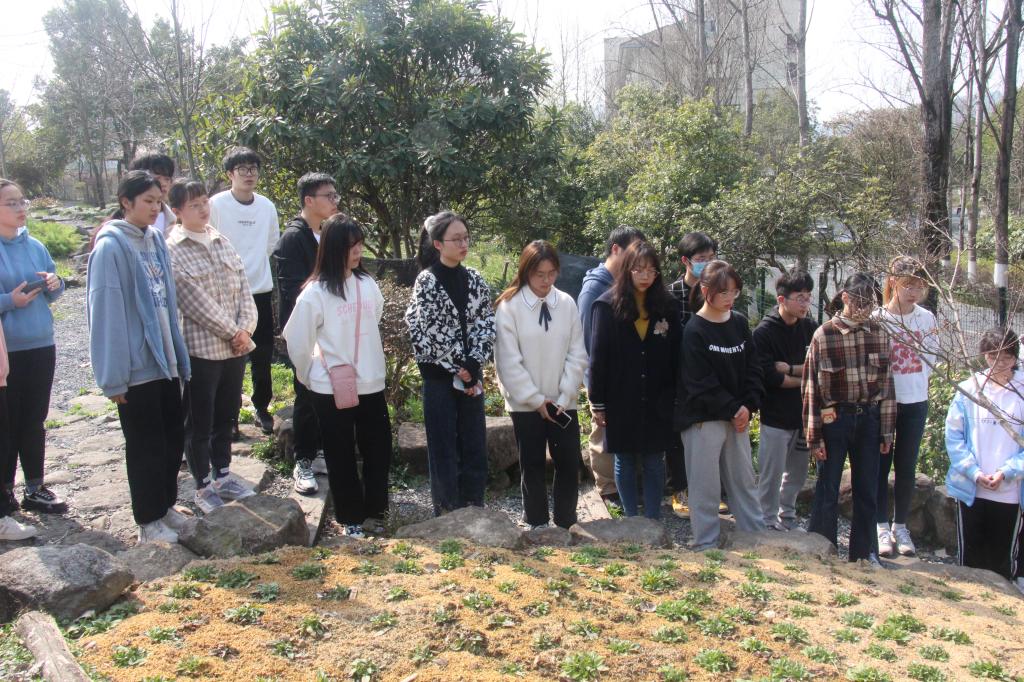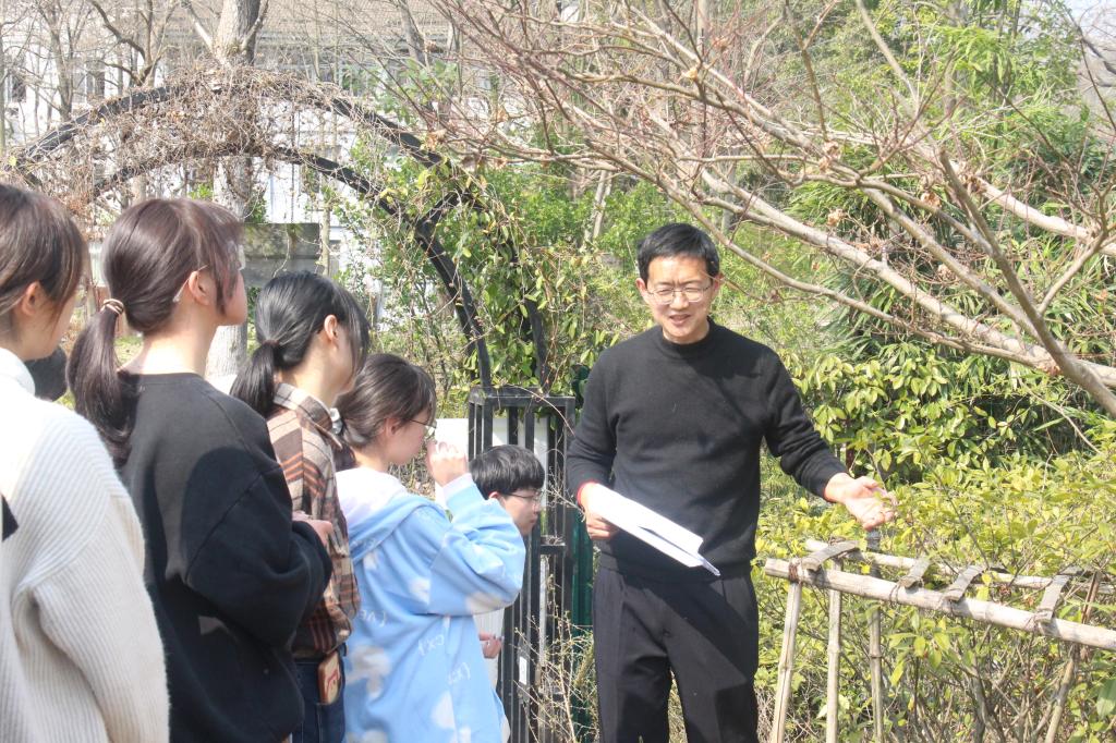 阳春三月,杏林春暖,百草园参观活动顺利展开。在参观过程中,老师先介绍了百草园按草药功效分块种植的规划。紧接着,老师向同学们深入讲解了不同草药的形态、功效和价值,并讲述有关草药的风俗神话,提出相关问题,引发同学们的思考。同学们仔细观察辨认草药,积极回答问题,感受中草药的独特魅力。百草园内,师生融洽,衣钵相传。