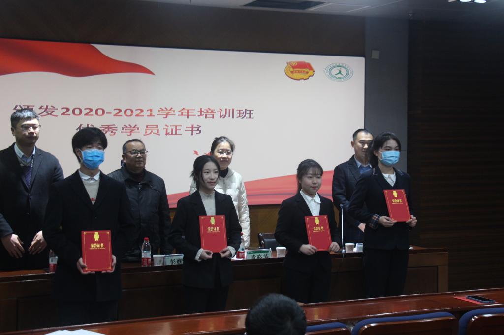 仪式上,胡乔丹和叶婷分别作为新老学员代表进行了发言,表示要勇立潮头,切问近思,认真学习,通过努力做一个对社会对国家有用的人,同时表达了对青马工程活动的祝愿和期待。会上老师们还为“青马工程”2020-2021学年培训班优秀学员颁发了证书。