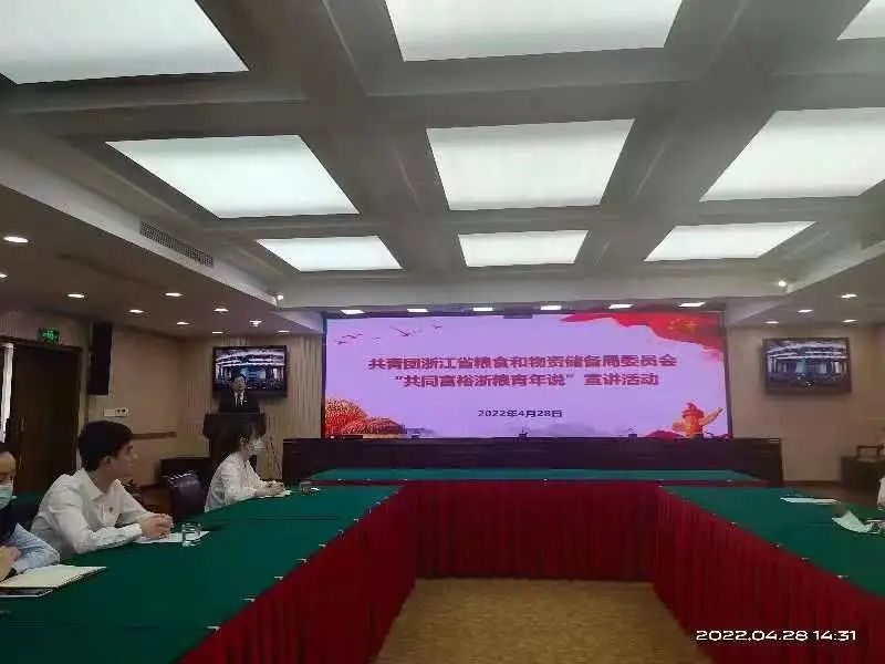 为迎接党的二十大,庆祝建团一百周年,弘扬“五四精神”,4月28日,威廉英国团委联合浙江省粮食物资局团委共同举办“共同富裕浙粮青年说”主题宣讲活动。学院党委书记汪和生、办公室主任陈桂鹏、全体辅导员和粮油储检专业学生代表参与线下会议,粮储专业其他学生观看线上直播。