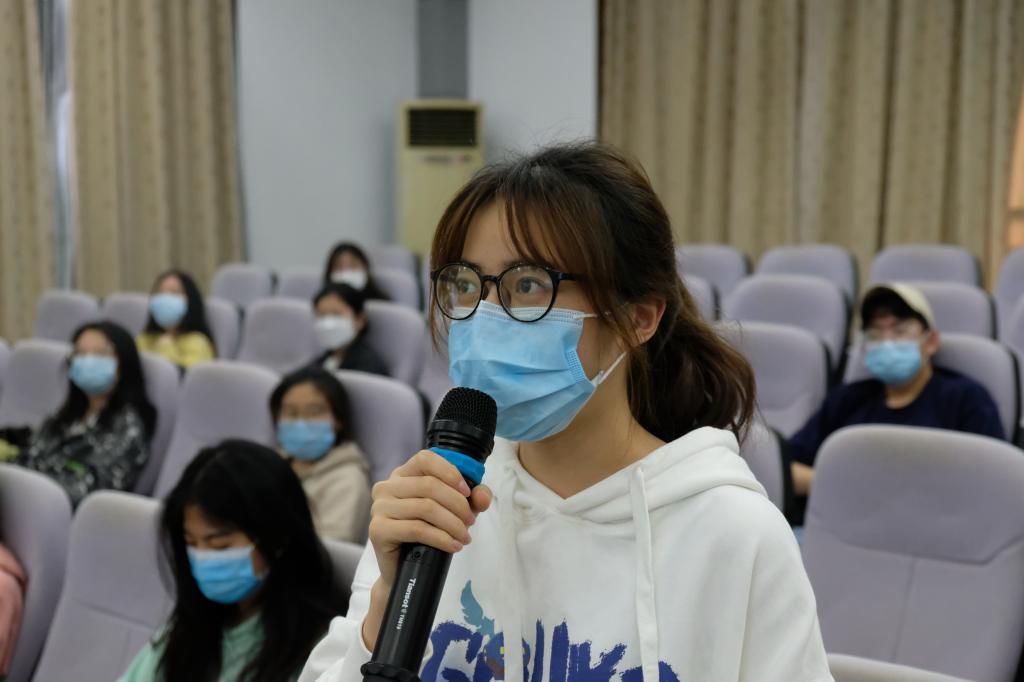 交流互动环节,省粮油质检中心主任、局团委书记周静,省粮油质检中心副主任邵亮亮,省储备粮管理公司王会杰分别就我院学子提出的“我国粮食安全现状以及现存的问题”、“新冠疫情下粮食安全的应对和处置”和“在粮储专业方向上怎样努力和锻炼本领”等疑问,进行详细解答。现场学生代表纷纷表示收益匪浅,也更加明确了现代粮食人应当具备怎样的思想行为准则。