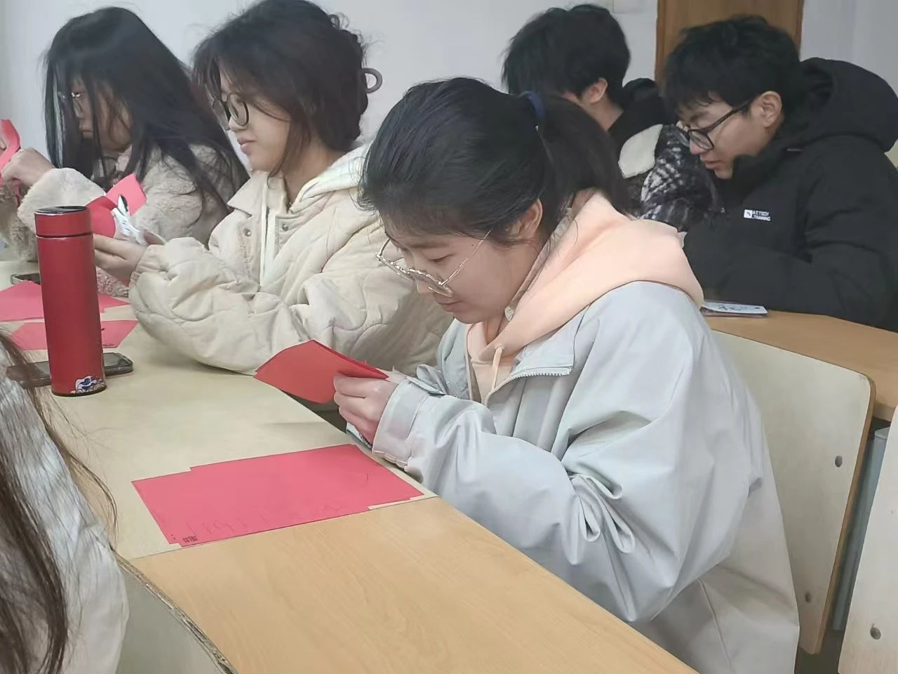 制作过程中,成员们相互学习、交流探讨剪技巧,进一步培养团队合作能力,提高支部凝聚力。完成后成员们交换窗花,以窗花为寄托,互相送出在生活、学习、工作等各个方面的美好祝福。