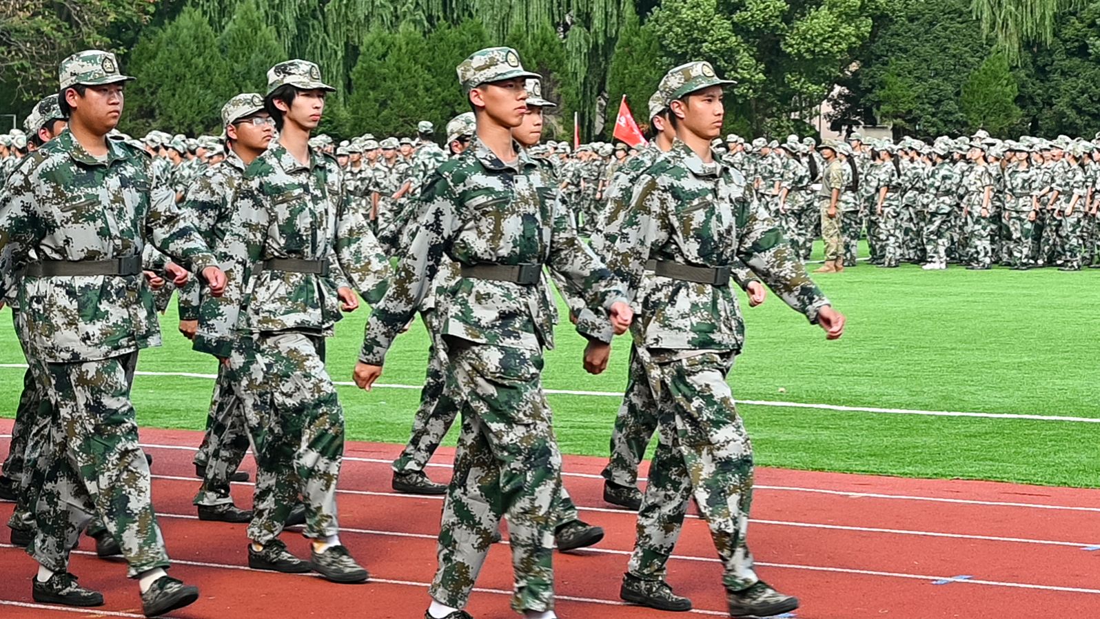在教官带领下,食健学子们从晨光熹微的晨训到暮色渐浓的晚练,始终以“令行禁止”的纪律意识紧跟教官指令:齐步走时脚步声汇聚成铿锵节拍,正步踢时裤线绷直如刀切整齐,口号呼喊时声浪穿透云霄尽显少年锐气。训练间隙,既有男生们相互纠正动作的较真模样,也有女生们咬牙坚持体能训练的坚毅身影,骄阳下的汗水与笑容,共同勾勒出青春最美的姿态。