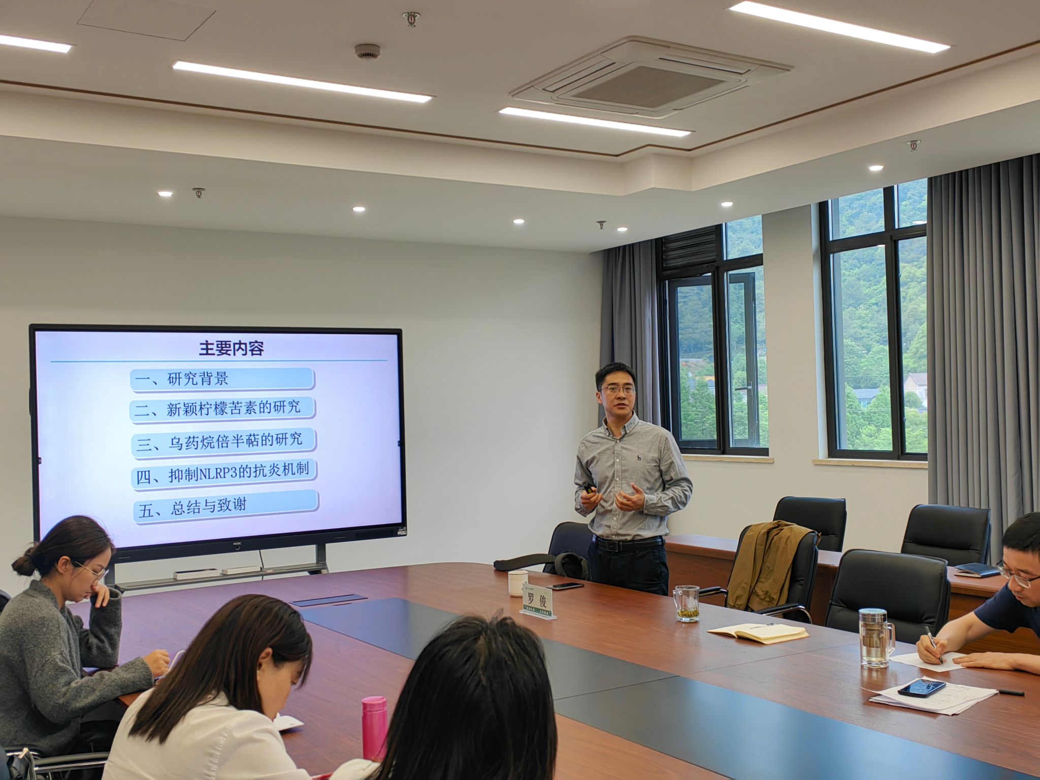 罗俊教授以“新颖抗炎活性天然产物的精准发现及研究”为题,聚焦于柠檬苦素和乌药烷倍半萜等两类新颖萜类天然产物,主要介绍了从生源和质谱分子网络的角度发现后定向分离获得的30余种来自于楝科、金粟兰科和藤黄科中药和药用植物中的抗炎活性的新萜类及其衍生物600余个,其中13个全新的萜类骨架评为国际热点化合物,并初步阐明了草珊瑚、椿白皮、金丝桃等常用中药和药用植物的主要化学成分及其抑制NLRP3炎症小体激活的抗炎机制。
